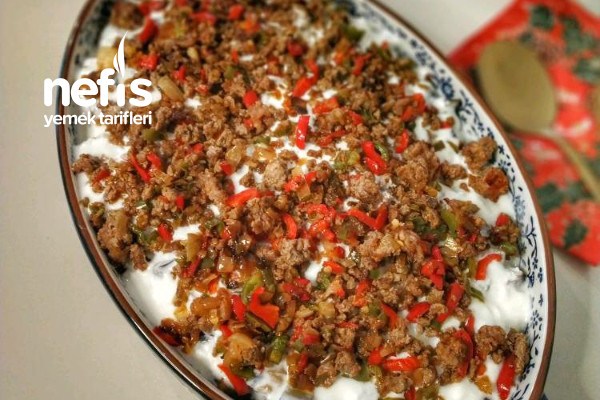 18 Aralık 2010 | Patlıcanlı Ekmek Kebabı Malzemeler 250 gram kıyma Sıvıyağ 1 adet soğan 1 adet yeşil ve kırmızı biber 1 adet domates Tuz Karabiber Toz kırmızı biber 4-5 dilim ekmek 3 adet patlıcan Üzeri İçin 1 diş sarımsak 1 kase yoğurt Öncelikle kıymayı kavuralım. Sıvı yağında küp küp doğranmış soğanı küçük küçük doğranmış yeşil ve kırmızı biberi ekleyip kavurmaya devam edelim. Küp küp doğranmış domatesi tuzunu ve baharatlarını ekleyerek suyunu çekinceye kadar pişirelim. Fırınlanmış kızarttığımız 4-5 dilim ekmeği servis kabına alalım. Üzerine küp küp doğrayıp kızarttığımız patlıcanları yerleştirelim. Patlıcanların üzerine sarımsaklı yoğurdu gezdirelim. Son olarak kıymalı harcı yoğurdun üzerine ilave ederek servis edelim. Deneyenlere afiyet şifa olsun ❤️.