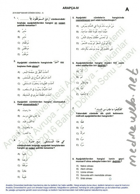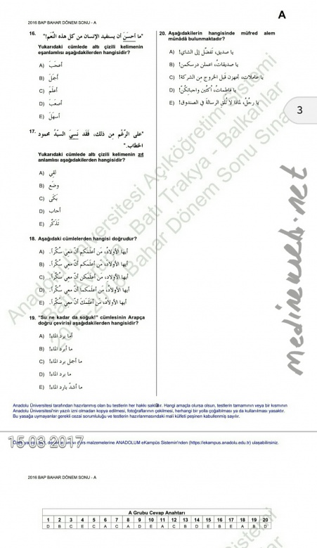 15 Kasım 2011 | BAP ARAPÇA-4 2016 Bahar Dònem Sonu Sınavı