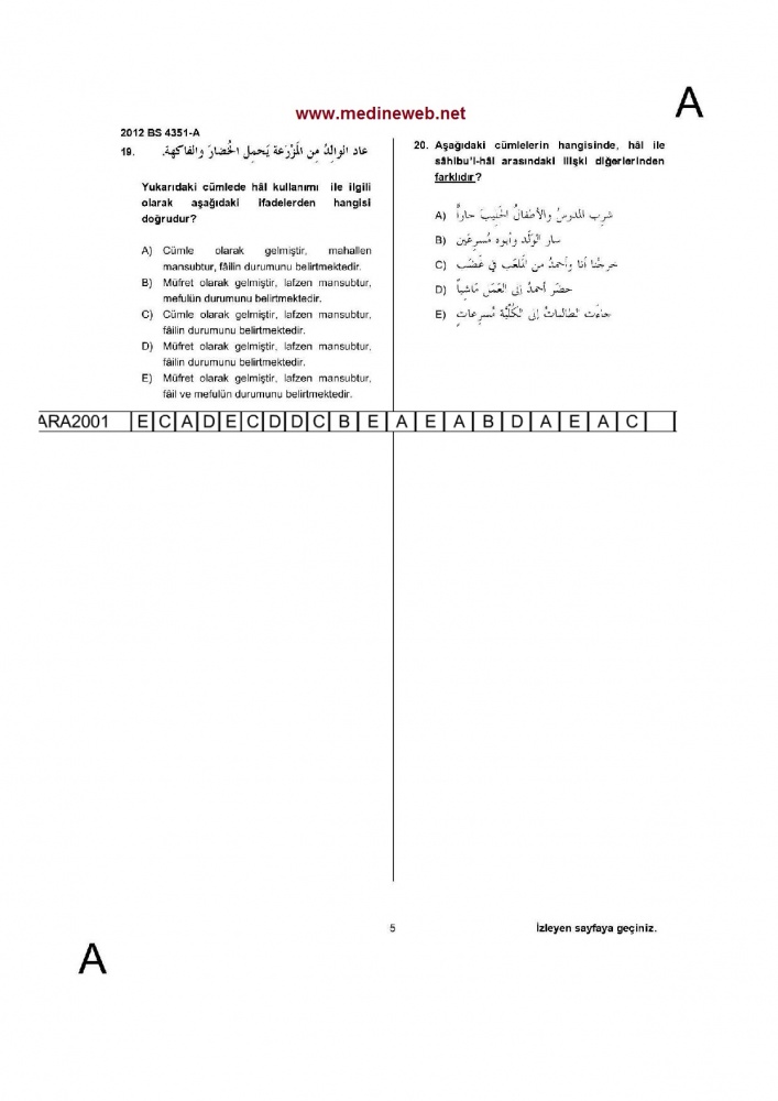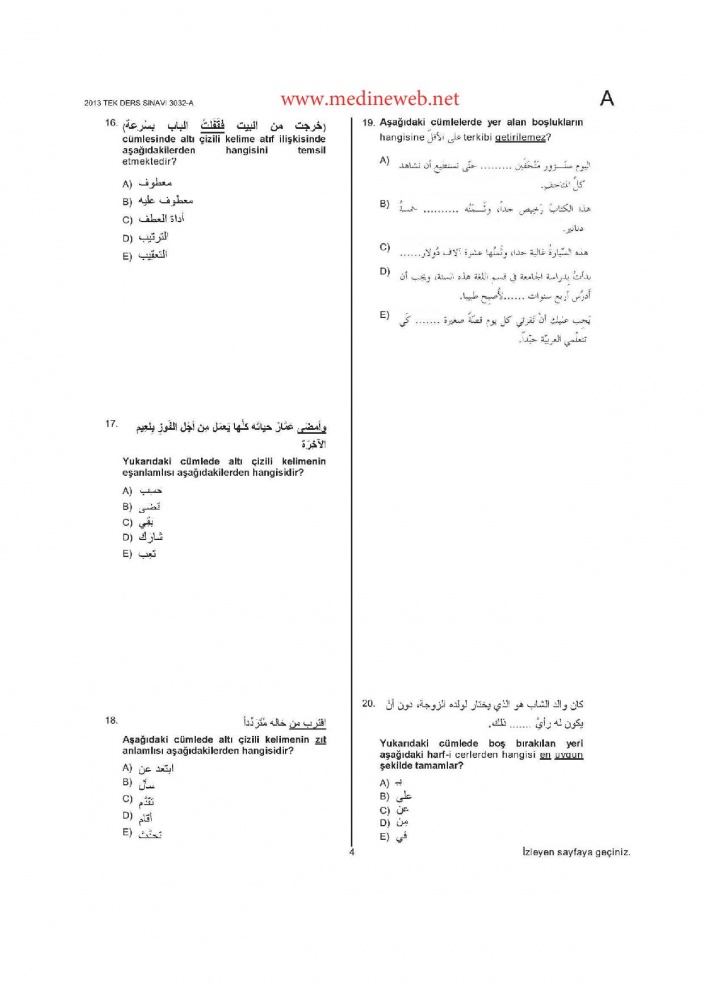 09 Şubat 2014 | Arapça 3 İlahiyat 2012 / 2013 / 2014 Tek Ders Sınavı 2012