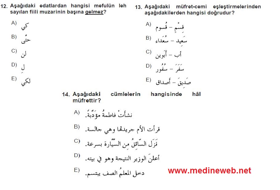 | Arapça 4 Batı Avrupa 2013 /2014/ 2015 Çıkmış Sorular ve Cevaplar | nurşen35 | 2.Sınıf | 10 | 07 Ocak 2017 21:46 |