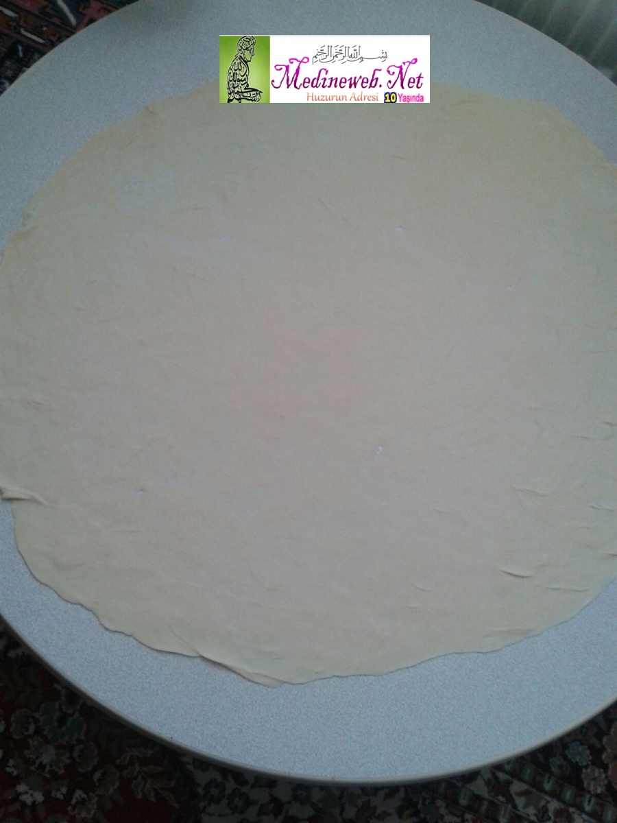 25 Şubat 2011 | hamurumuzu başta ikiye bölelim sonra her parçayı 3 parçaya bölerek 6 büyük beze elde edelim 3'erli olarak açacağız bezeyi un kullanarak açın baktınız çok yapışıyor kenarlarını oklavayı bastırarak açın yani oklavaya sarmadan çok aşırı ince olmasına gerek yok ama çok az açıp da bırakmıyalım |