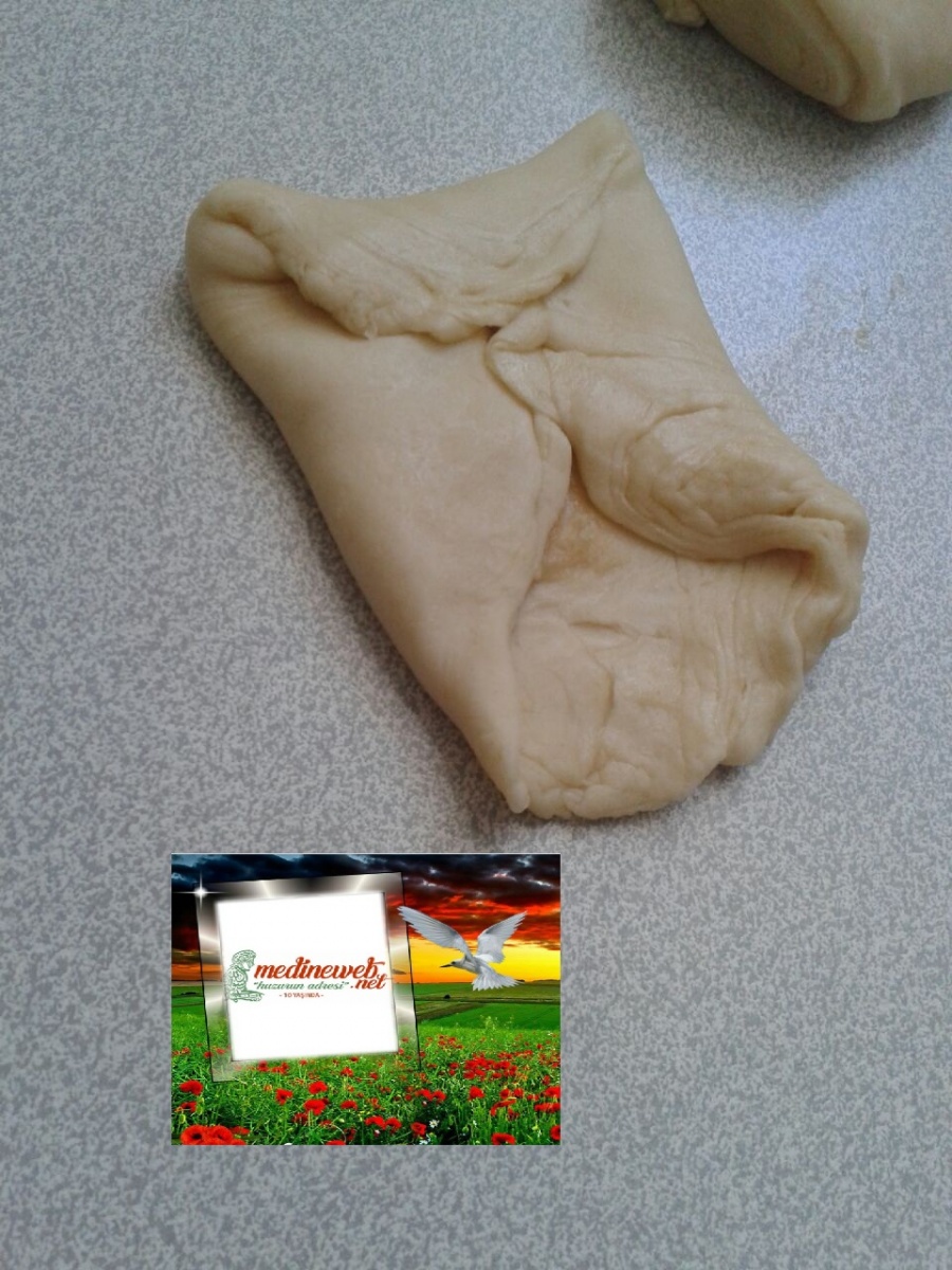 25 Şubat 2011 | hamurumuzu yoğurma aşamasına geçelim 1 ölçüden 2 büyük tepsi çıkıyor ben bir yemek sitesinde keteye yumurtanın akı konmazsa daha uzun süre dayanacağını okudum o nedenle yumurta akını koymuyorum başka şekilde değerlendiriyorum siz isterseniz yumurta akını hamura katabilirsiniz yarım ölçü yapınca bir tepsi çıkar kestiğiniz büyüklüğe göre 14-16 arası sayıda çıkar HAMUR MALZEMELERİ 4 su bardağı süt 1 su bardağı sıvı yağ 2 yemek kaşığı kuru maya veya 40 gram yaş maya 3 yemek kaşığı toz şeker (şeker miktarı isteğe bağlı ama hafif şekerl hamur pastanelerdeki gibi tadı veriyor) 3 çay kaşığı tuz alabildiğince un hamuru ne sert ne çok yumuşak yapalım yoğuracağımız leğene biraz un koyup ortasını açıp şeker ve mayayı malzemedeki sütten biraz ılık olarak koyup 15-20 dakika kabartılıp bekletilse hamur daha çabuk kabarıyor aşağıdaki resim hamurun yoğrulmuş hali mayalanmaya bırakın çok fazla mayalanmasın ki aşamalar uzun havalar sıcak çok uzun süre hamur beklerse maya koku yapabilir |