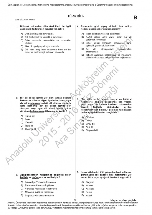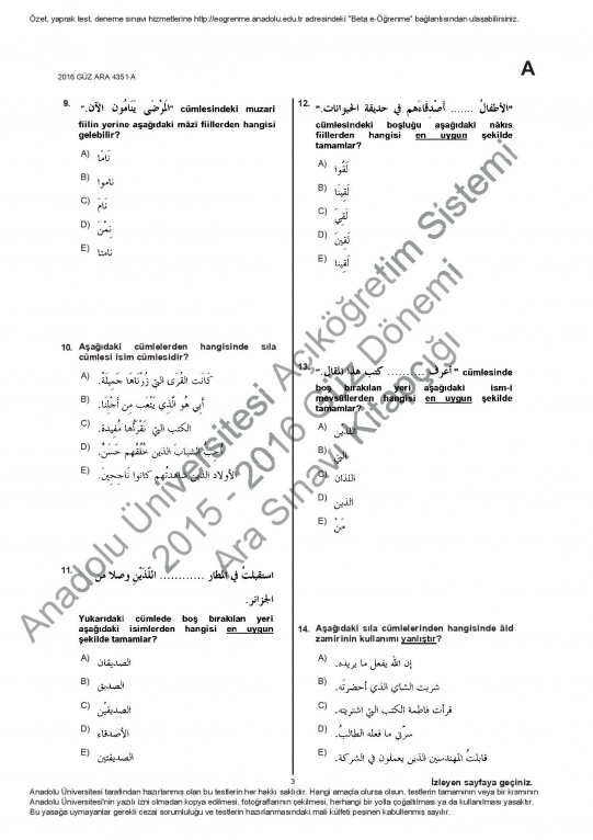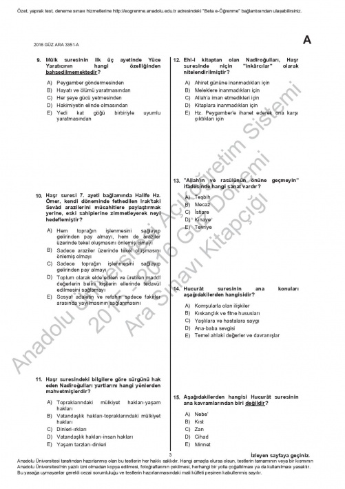 15 Kasım 2011 | AÖF İlahiyat 2.SINIF 2015-2016 güz dönemi arasınavı: cumartesi