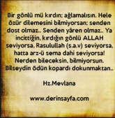 Sen verdikçe, dost görünen çok olur İste de gör hepsi birden yok olur Sen kendi kendine yetmeyi öğren Tüm dünyanin malina gönlün tok oLur (Hz. Mevlana)
