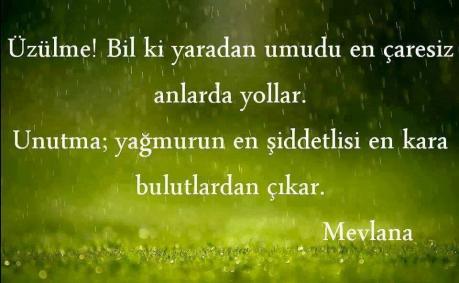 18 Aralık 2010 | ![]() Dost matematiksel olmalı; Sevinci çarpmalı… Üzüntüyü bölmeli… Geçmişi çıkarmalı… Yarını toplamalı… Kalbinin derinliklerindeki ihtiyacı hesaplamalı… Ve her zaman bütün parçalardan daha büyük olmalı… İşi bitince seni bir tarafa atmamalı… Mevlana