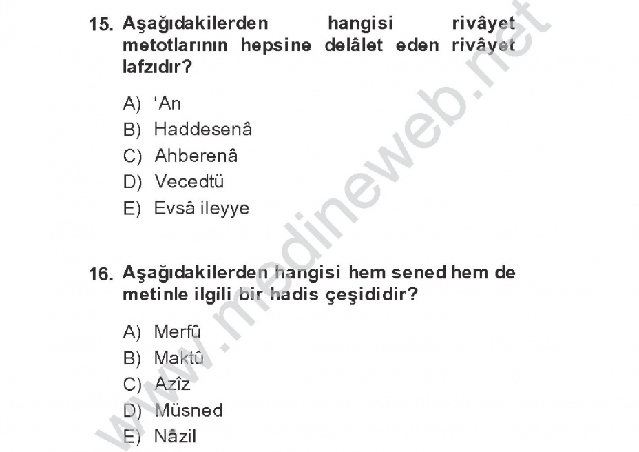 09 Şubat 2014 | Hadis Tarihi ve Usulü 2015 Ara Sınav ve Dönem Sonu Sınavı medineweb.net