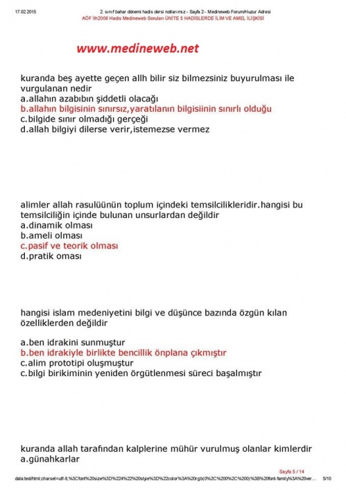 | TEFSİR 7 / 10 Ünite Soru ve Cevap Medineweb Çalışmaları | nurşen35 | Tefsir | 5 | 24 Nisan 2016 23:59 |