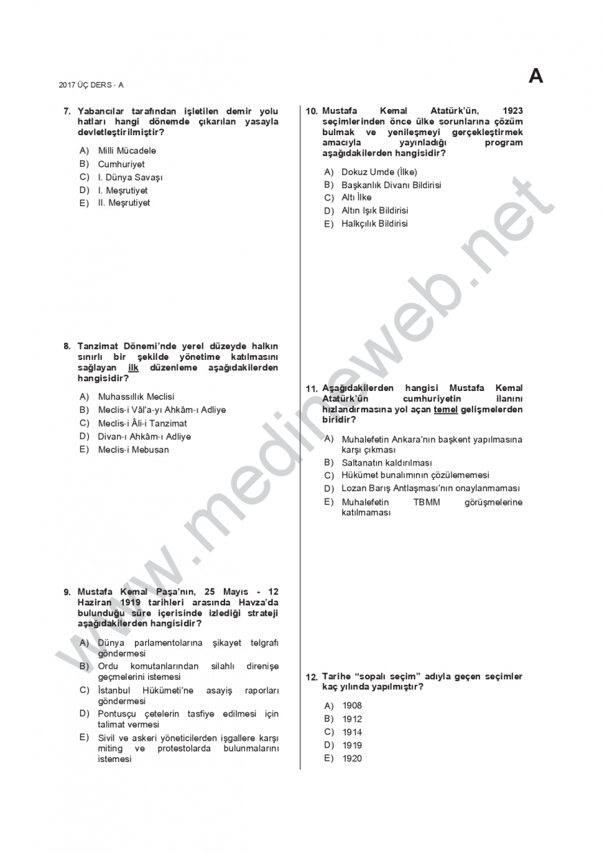 15 Kasım 2011 | 2017:3 ders sınavı-ATATÜRK İLKELERİ VE İNKILAP TARİHİ 1 [Linkler Ziyaretçilere Kapalıdır.Giriş Yap Veya Üye Olmak için TIKLAYIN...]