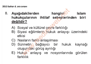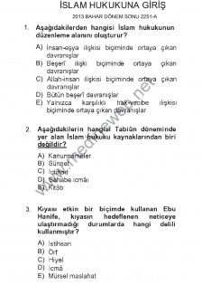 09 Şubat 2014 | İslam Hukukuna Giriş 2013 Bahar Ara Sınav ve Dönem Sonu Sınavı medineweb.net