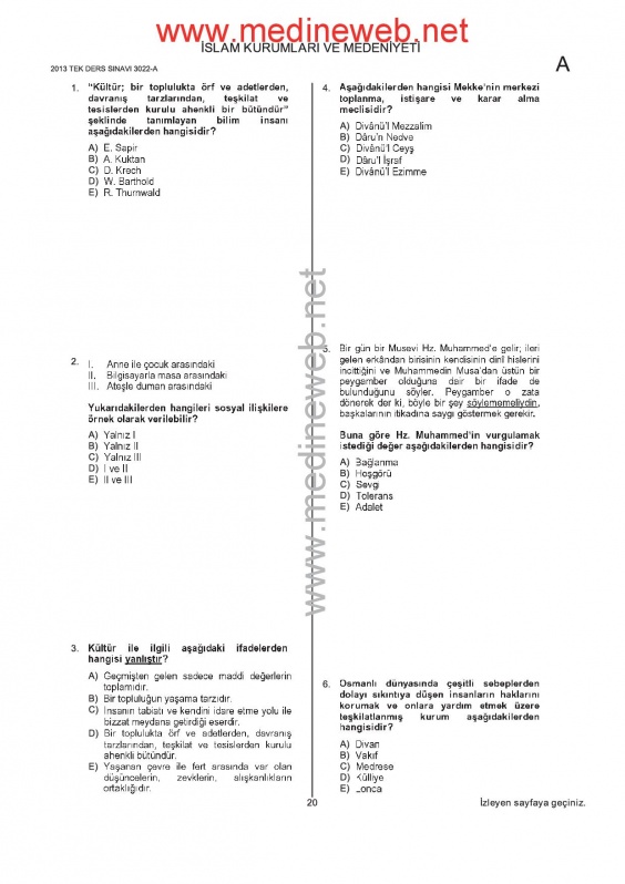 09 Şubat 2014 | İslam Kurumları ve Medeniyeti 2013 / 2014 Tek Ders Sınavı [Linkler Ziyaretçilere Kapalıdır.Giriş Yap Veya Üye Olmak için TIKLAYIN...]
