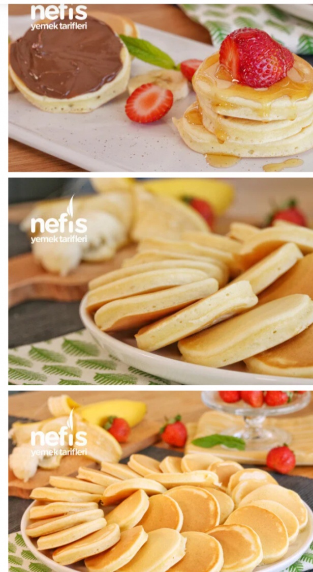 18 Aralık 2010 | Kolay Pankek Tarifi.. Malzemeler 2 adet yumurta 2 yemek kaşığı şeker 1 su bardağı süt 1,5 su bardağı un 1 paket kabartma tozu 1 paket vanilya Pişirme aşamasında kullanmak için; sıvı yağ Servis önerisi: Kivi, muz, çilek, reçel, bal, çikolata Yapılışı ; Pankek yapmak için öncelikle yumurtalar ve şekeri uygun bir karıştırma kabına alarak iyice çırpalım. Süt, un, kabartma tozu, vanilya ilave çırpma teli ile çırpalım. Siz dilerseniz mikser ile de çırpabilirsiniz. Kek kıvamından biraz daha koyu olacak şekilde hamur hazırlayalım. Teflon ya da yapışmaz bir tavaya az sıvı yağı dökelim, fırça yardımı ile her tarafına dağıtalım. Sıvı yağı az kullanmak pankek yapmanın püf noktalarındandır. Dilerseniz peçete ile de tavaya dağıtabilirsiniz. 1 büyük kaşık hamur dökülerek hamurun kendi kendine yayılmasını bekleyelim. Üzeri göz göz olmaya başlayan pankeklerimizi spatula yardımı ile ters çevirelim. Diğer taraflarını da pişirelim. Her iki tarafı da pişen pankeklerimizi servis tabağına alalım. Üzerine pudra şekeri serpilerek zevkinize göre muz, kivi, çilek, çikolata, bal, sürülebilir çikolata, reçel ile servis edebilirsiniz. Afiyet olsun.