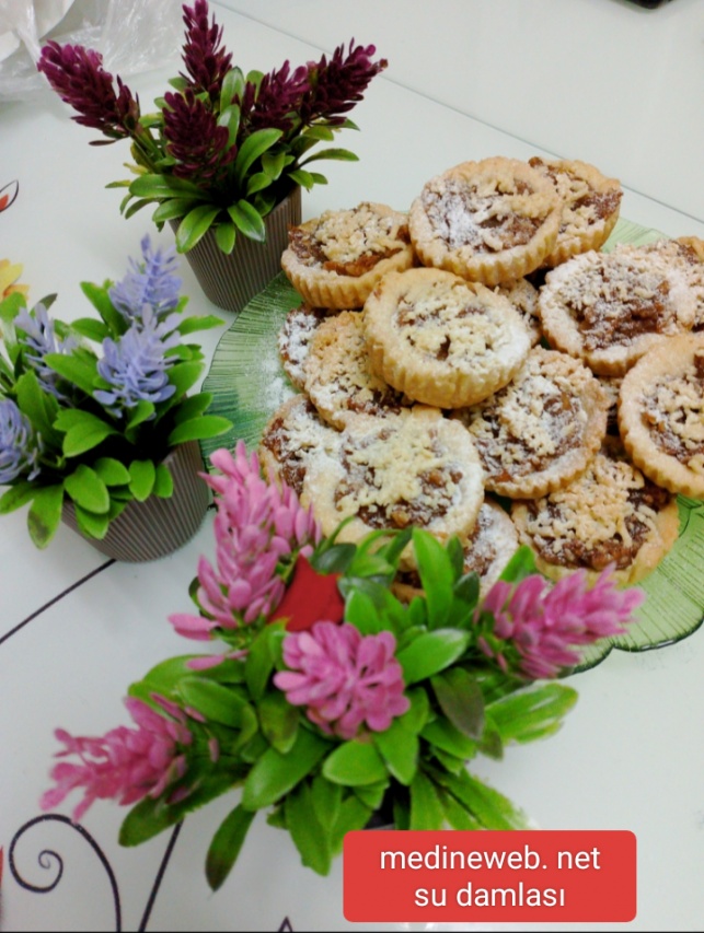 18 Aralık 2010 | Limon sıkacağında Elmalı kurabiye.. Malzemeler; 125 gram tereyağı 1 çay bardağı ayçicek sıvı yağ 3 yemek kaşığı tepeleme pudra şekeri 1 yumurta 3 yemek kaşığı ılık su 1 yemek kaşığı sirke 3 yemek kaşığı nişasta 1 tatlı kaşığı kabartma tozu 3,5 su bardağı un ( kontrollü ekleyin ) İç malzemeler ; 5-6 tane elma 1 çay bardağı şeker 1 tatlı kaşığı tarçın Yarım su bardağı ceviz İsteğe bağlı kuru üzüm Yapılışı; Bütün malzelemeleri ekleyip güzelce yoğuralım, özlü bir hamur olunca cevizden büyük hamur alıp limon sıkacağına muftin kağıdı koyup, hamur üzerine koyalım,onun üzerinede kare kestiğimiz buzdolabı poşetinden koyup hamuru sıkıştıralım,şekli çıkacak poşet sayesinde yapışmıyacak,muftin kek kalıplarına koyalım.üzerine elmalı harçdan yerleştirelim, Biraz hamur ayırmıştık buzlukta dondurduğumuz hamuruda üzerine rendeleyelim. Şekli güzel olan hamurları 180 derecede alt üst ayarda 45 dakika pişirelim. Çıkınca ılındıkdan sonra pudra şekeri döküp servis edelim.. Ben yaptım çok beğendim, tavsiye ederim bir kaç gün bayatlamıyor.. Afiyetle efenim..