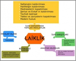25 Şubat 2011 | ŞEMALARLA ATATÜRK İLKELERİ(KPSS) Laiklik ilkesi ile ilgili inkılaplar Saltanatın kaldırılması Halifeliğin kaldırılması Şer’iye ve Evkaf Vekaleti’nin kaldırılması Tekke ,zaviye ve türbelerin kapatılması 1924 Anayasası’ndan “Devletin dini İslam’dır” maddesinin çıkarılması. |