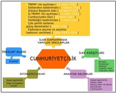 25 Şubat 2011 | Cumhuriyetçilik ilkesi ile ilgili inkılaplar TBMM’nin açılması Saltanatın kaldırılması Cumhuriyetin ilanı Siyasal partilerin kurulması 1921 ve 1924 Anayasalarının hazırlanması Kadınlara seçme ve seçilme hakkının tanınması Ordunun siyasetten ayrılması |
