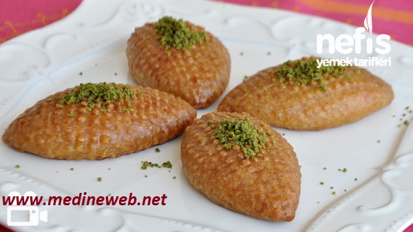 18 Aralık 2010 | "Kalbura Bastı "/Medineweb mutfağı Malzemeler_ 1 çay bardağı süt 1 çay bardağı sıvı yağ 1 yemek kaşığı yoğurt 2 yemek kaşığı irmik yarım paket (125) g tereyağı veya margarin 1. 5 çay kaşığı karbonat 3. 5 su bardağı un (yaklaşık) şerbeti için; 2. 5 su bardağı su 2 su bardağı şeker birkaç damla limon suyu içine; dövülmüş ceviz.. Hazırlanışı_ Öncelikle kalburabastı tatlısının şerbeti hazırlanır. Bunun için şeker ve su küçük bir tencereye alınarak kaynamaya bırakılır. Yaklaşık 15 dk kaynadıktan sonra birkaç damla limon suyu eklenip 4-5 dk daha kaynatılarak ocaktan alınır ve soğumaya bırakılır. Daha sonra, Oda sıcaklığındaki tereyağı ve diğer malzemeler bir kaba alınarak hamur yoğrulur. Hamurdan iri ceviz büyüklüğünde parçalar koparılarak elle yuvarlatılır. Top haline gelen hamur kalbur üzerine bastırılarak elle açılır. Ortasına dövülmüş ceviz içinden bir miktar yerleştirilir ve hamurun kenarları ortada birleştirilerek iyice kapatılır. Hazırlanan tatlı ters çevrilerek kalburdan alınır ve fırın tepsisine aralıklı olarak dizilir. Hamurumuz yeterince yağlı olduğu için tepsiyi yağlamanıza gerek kalmıyor. Tüm hamur şekillendirildikten sonra 180 derece önceden ısıtılmış fırında pişmeye bırakılır. Tatlılar güzelce kızardıktan sonra fırından alınarak sıcak tatlıya soğuk şerbet gezdirilir. Ben şerbeti dökmeden önce fırın kabından daha küçük bir borcama alıyorum ki şerbet çok yayılmasın. Birkaç saat dinlendirdikten sonra kalburabastınızı servis edebilirsiniz. Dilerseniz servis ederken Antep fıstığı veya Hindistan cevizi ile süsleyebilirsiniz. Gönül rahatlığı ile deneyebilirsiniz, bu şekilde kalburabastı tatlısı gerçekten çok lezzetli oluyor ![]() Birkaç not; -karbonat kullandığımız için kalburabastınız gerçeğinde olduğu gibi karamel rengine yakın farklı bir ton alıyor, eğer evinizde karbonat yoksa kabartma tozu da kullanabilirsiniz fakat daha orijinal olması açısından varsa karbonat kullanmanızı tavsiye ederim. "Alıntı" "Not" Test edilmiştir ![]() Bu tatlıyıda deneyin derim sonuç mükemmel ..Afiyet olsun...