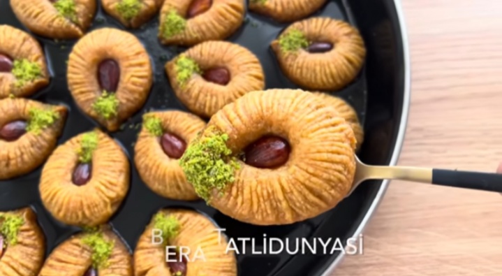 18 Aralık 2010 | İrmikli damla 💦 Malzemeler ; 70 gr oda sıcaklığında tereyağı 1 çay bardağı irmik 1 çay bardağı sıvı yağ Yarım çay bardağı yoğurt 1 yumurta 2 kaşık sirke 1 paket kabartma tozu.. 2,5-3 su bardağı un ( kontrollu ekleyin) Şerbeti için; 2 su bardağı şeker 2 su bardağı su Çeyrek limon İç malzeme ; Antep fıstığı ( ceviz, fındık da olur) Yapılışı ; Önce şerbeti kaynatıp soğumaya alalım, kaynadıkdan sonra 10 dakika yeterli.. Tüm malzemeleri bir kaba koyup harmanlıyalım, hepsi oda sıcaklığında olursa,sonuc mükemmel olur. Daha sonra un ve kabartma tozu nu ekliyelim yumuşak bir hamur elde edelim.. Küçük parçalar alıp uzun şerit gibi yapalım,çok uzun değil.. Arasına istediğiniz malzemeyi koyup kapatalım..üzerine bıcakla cizikler atalım çok sık olsun ki şekil güzel görünsün.. Arasına badem koyup kapatalım.. 175 derece alt üst ayarda 30 ,35 dakika pişirelim.. Afiyet olsun..