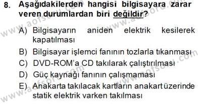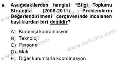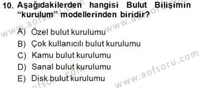 1- Bulut ortamında saklama hizmetlerinin en çok önem kazandığı dönem aşağıdakilerden hangisidir? A) Kitle iletişim teknolojilerine dayalı dönem B) Bilgisayar destekli eğitim dönemi C) İnternet tabanlı eğitim dönemi D) Mobil öğrenme dönemi E) Çoklu ortam dönemi 2- Aşağıdaki hangisi Türkiye’nin ilk e-Devlet girişimlerinden biri değildir? A) Türkiye Bilişim ve Ekonomik Modernizasyon Projesi B) e-Devlet Kapısı ( EDK ) C) Ulusal Enformasyon Altyapısı Ana Planı ( TUENA ) D) Ulusal Akademik Ağ ve Bilgi Merkezinin ( ULAKBİM ) kurulması E) Elektronik Ticaret Ağının kurulması 3- Aşağıdakilerden hangisi Bilgi Toplumu Stratejisi ( DPT, 2006 ) öncelikli konularından biri değildir? A) Mükerrerlikler ve kaynak israfına yol açan münferit kurumsal proje ve uygulamaların önlenmesi B) Hizmet süreçlerinin yeniden yapılandırılması, ön ve arka ofis süreçlerinin bağımsız dönüşümü C) Öngörülen projelerin proje gerekleri çerçevesinde bütçe ve zaman tanımları içerisinde gerçekleştirilmesi D) Önemli ölçüde kaynak tasarrufu sağlayacak olan elektronik kamu satın alma altyapısının oluşturulması E) Kurum içi ve kurumlar arasında elektronik ortamda güvenli ve güvenilir bilgi ve belge paylaşımının sağlanması 4- Aşağıdakilerden hangisi Akıllı Bilişimin gelişiminde en önemli rolü oynamıştır? A) 64Bit işletim sistemleri B) SSD Diskler C) Akıllı cep telefonları D) Algılayıcı (sensör) teknolojileri E) LED teknolojisi 5- “Kullanıcılar eseri kopyalayabilir, dağıtabilir, görüntüleyebilir, kullanabilir ve ticari amaçlarla olmamak koşuluyla üzerinde değişiklik yaparak yeni eserler oluşturabilir.” şeklinde tanımlanan Creative Commons kullanım koşulu aşağıdakilerden hangisidir? A) Attribution ( BY ) B) Noncommercial ( NC ) C) No Derivative Works ( ND ) D) Share-Alike ( SA ) E) Open Educational Resource ( OER ) 6- Aşağıdakilerden hangisi MathType ile yapılabileceklerden biri değildir? A) Eşitliğin tümünü ya da bir bölümünü renklendirme B) Matematiksel formül gösterimi C) Denklem görüntüleme işlemi D) Word’den denklem Export işlemi E) Eşitliği referans listesinde gösterme 7- Aşağıdakilerden hangisi Bulut yapısındaki BT İş Modellerinden biridir? A) Tüzel Bulut Servisi B) Sunucu Bulut C) Toplu Bulut Servisi D) Altyapı Bulut Servisi E) Bilgi İşlem Bulutu 8- Kültürün hızsal yaygınlaşmasının nedeni aşağıdakilerden hangisidir? A) Ticaretin artması B) Küresel köy anlayışı C) Habercilik yaklaşımları D) Dijitalleşme E) Yeni medya 9- Aşağıdakilerden hangisi sosyal paylaşım sitelerinin sakıncalarından biri değildir? A) Çocukların derslerine olumsuz etkisinin olması B) Aile ve arkadaşlara daha az zaman ayrılması C) Faklı konulardaki ders notlarının paylaşılması ve erişilmesi D) Çalışma düzenini aksatması E) Kişisel bilgilerin korunması ve gizlilik sorunları 10- Verileri toplayıp yerleştirdikten sonra bunları otomatik işlemlere tabi tutma olanağı veren manyetik sisteme ne ad verilir? A) Network sistemi B) Bilgisayar C) Bilişim sistemi D) Teknoloji E) Çevre birimleri 11- Aşağıdakilerden hangisi Bulut Bilişimin kullanıcılara sağladığı faydalardan biri değildir? A) Yönetim kolaylığı B) Maliyetlerdeki düşüş C) Değiştirilmesi zor yapı nedeniyle sağlamlık D) Esneklik E) Taşınabilirlik 12- Aşağıdakilerden hangisi değerlendirme türlerinden biri değildir? A) e-Portfolyo B) Grup çalışması C) Mikrobloglar D) e-Ödev E) Tartışmalara katılım 13- Kişisel Öğrenme Ortamında Birebir Ağ Oluşturma etkinliğinde kullanılan Web 2.0 araç kümesi aşağıdakilerden hangisidir? A) WikiSpaces B) Google Drive, Microsoft SkyDrive, Dropbox C) Google Reader, Google Alerts D) Google Search, Google Blog Search E) Twitter, Facebook, LinkedIn, Google+ 14- Bilgisayardaki hard diski ve hafızayı virüslere karşı tarayarak bulduğu virüsleri bilgisayardan silmeye çalışan yazılımlardır. Yukarıda tanımı verilen kavram aşağıdakilerden hangisidir? A) Antivirüs B) Virüs C) Hacker D) Güvenlik Duvarı E) Sandbox 15- Hadoop nedir? A) Büyük Veri (Big Data) işlenmesinde kullanılan bir yaklaşımdır. B) Bilgilerin bilgisayarlar arasında transferinde kullanılan bir protokoldür. C) Bilgilerin veriye dönüştürülmesinde kullanılan bir tekniktir. D) CPU ile Hafıza arasındaki senkronizasyon yapısının adıdır. E) John Hadoop tarafından geliştirilmiş kriptolama tekniğidir. 16- Sosyal paylaşım sitelerinde gizlilik ve güvenlik ile ilgili aşağıdaki ifadelerden hangisi yanlıştır? A) Sosyal paylaşım sitelerinde yüz yüze tanınmayan kişilerle de hemen arkadaş olunabilir. B) Uzak arkadaşlar ile sadece çok kısıtlı bilgiler paylaşılmalıdır. C) Kullanıcılar kişisel bilgilerinin ticari amaçlarla kullanılmaması için gerekli güvenlik ayarlarını en üst düzeyde yapmalıdır. D) Çocuklar sosyal paylaşım sitelerinin kullanımı konusunda aileleri ve öğretmenleri tarafından bilinçlendirilmelidir. E) Aileler çocuğun kullanıcı adını ve şifresini bilerek belirli aralıklarda hesabına girip olup bitenleri kontrol etmelidir. 17- I. e-Katılımcılık anlamında vatandaş odaklı kamu hizmeti sunumu II. Kurumsal müşterilere katılan değerin en üst seviyede gerçekleşmesi için paylaşımcı/ortak hizmet kültürü III. Profesyonellik anlamında hükümet içi kaynak ve kabiliyetlerin etkin sunumu ve yönetimi Yukarıdaki ana etkenlerden hangilerinin oluşması e-Devletin gerçekleşmesi için gereklidir? A) Yalnız I B) Yalnız II C) I ve II D) I ve III E) I, II ve III 18- Kamu kurumlarının e-dönüşümü ile ilgili aşağıdaki temel sorunlardan hangisi son zamanlarda göreceli bir azalma eğilimine girmiştir? A) Mevzuat sorunları B) Kurum içi koordinasyon sorunları C) Mali sorunlar D) Personel sorunları E) Kurumlar arası koordi