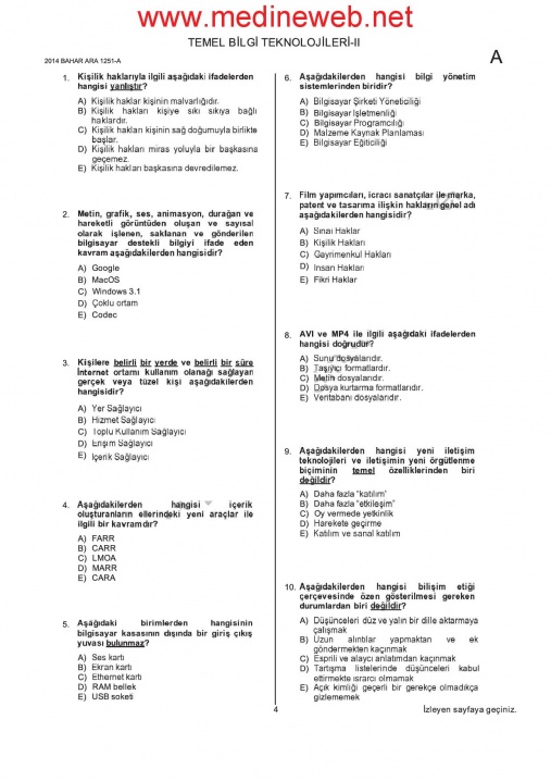 | TEB Teknolojileri II 2013 Bahar Dönemi Sınav Soru ve Cevapları Medineweb | nurşen35 | Temel Bilgi Teknolojileri 2 | 8 | 07 Şubat 2017 00:54 |