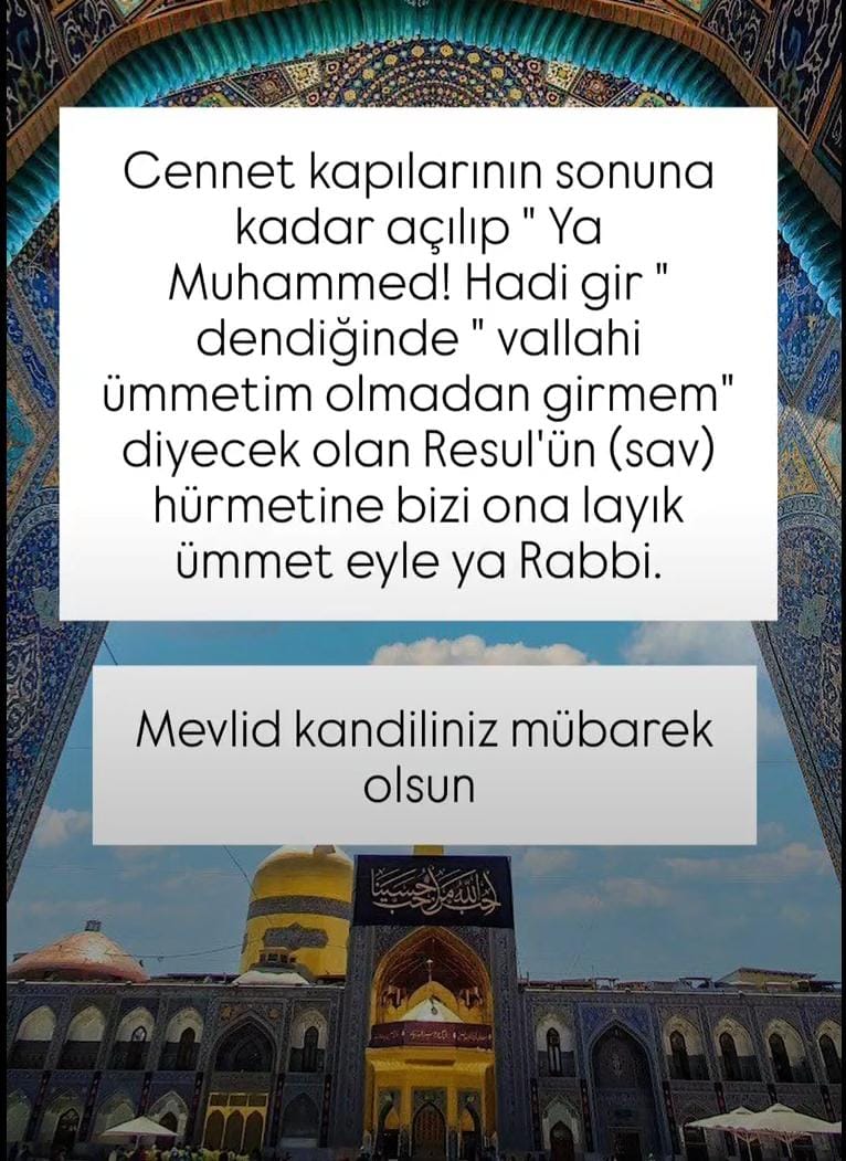 "Getirdiği ebedi nura, sünnet-i seniyyesine yeniden sımsıkı sarılmak ve Mevlid Kandilini vesile ederek ona yeniden bîatimizi, bağlılığımızı tazelemek ne yüce bir şeref ve ne büyük bir saadettir." Mevlid kandiliniz mübarek olsun